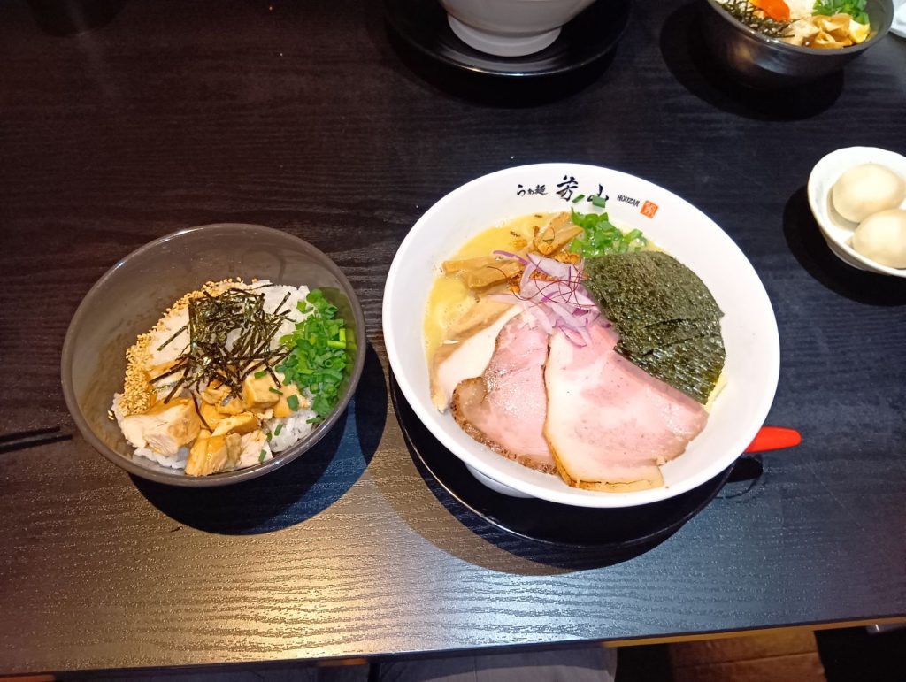 らぁ麺芳山さんで鶏白湯ラーメン塩と鶏ご飯をいただきました。