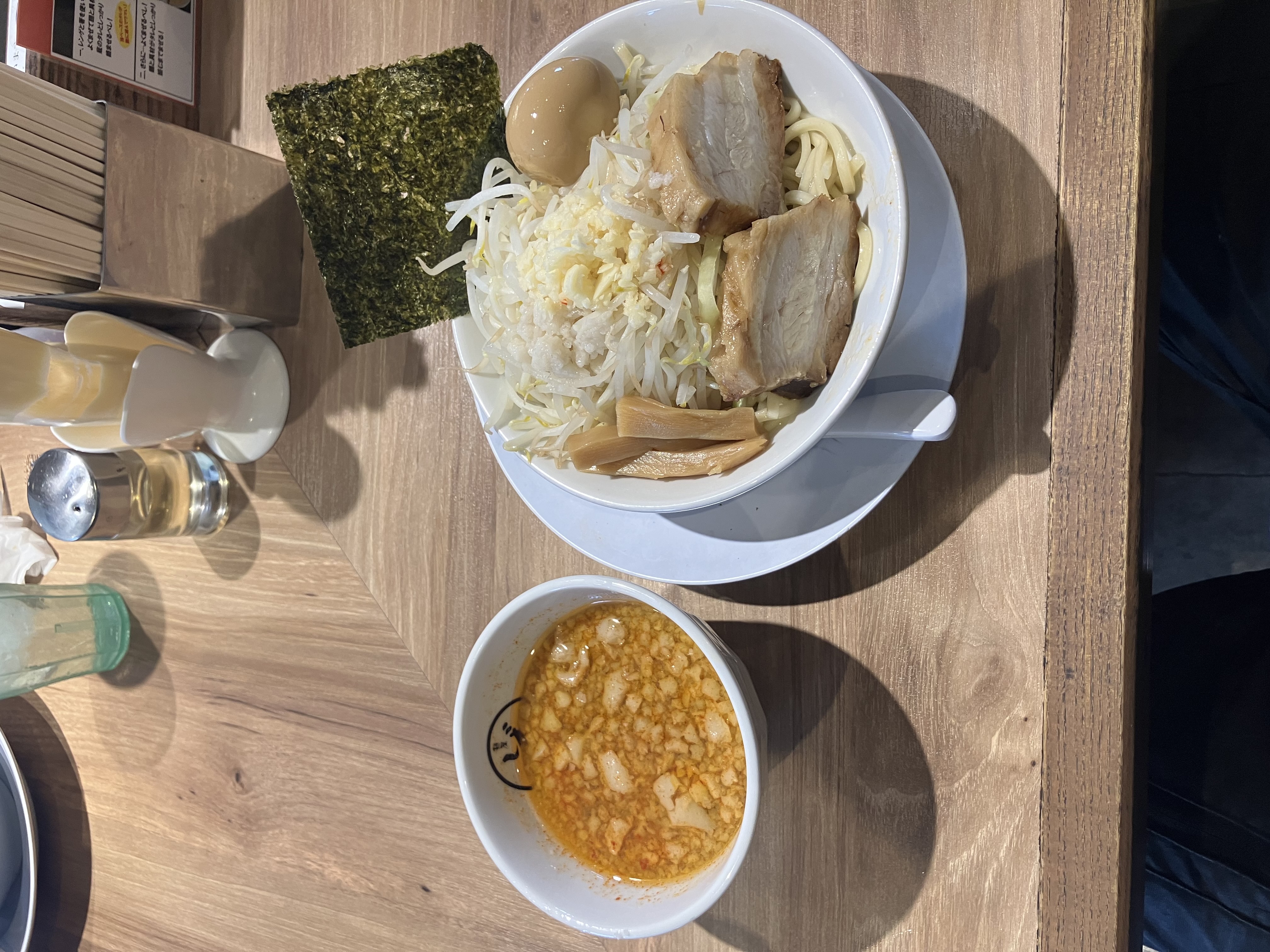 つけ麺はハーフがないので並盛りにしましたが、まぜ麺の時はハーフでお腹いっぱいになりそうです。
