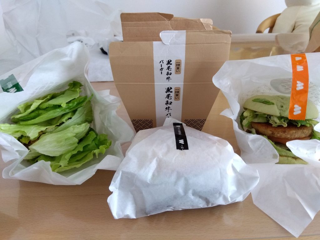 黒毛和牛バーガー、モスの菜摘、グリーンバーガー全てバンズが特別仕様でした。