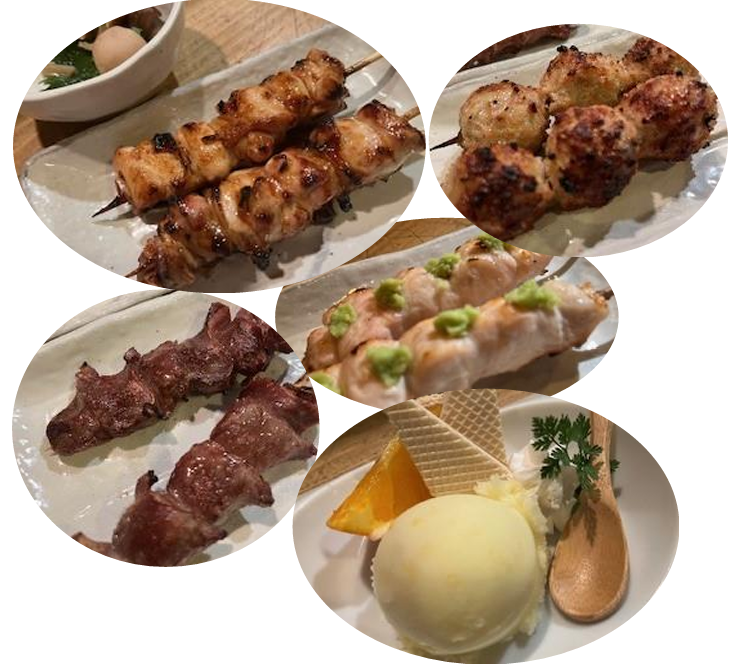 焼き鳥 もも、せせり、つくね、砂肝、お雑炊などなど