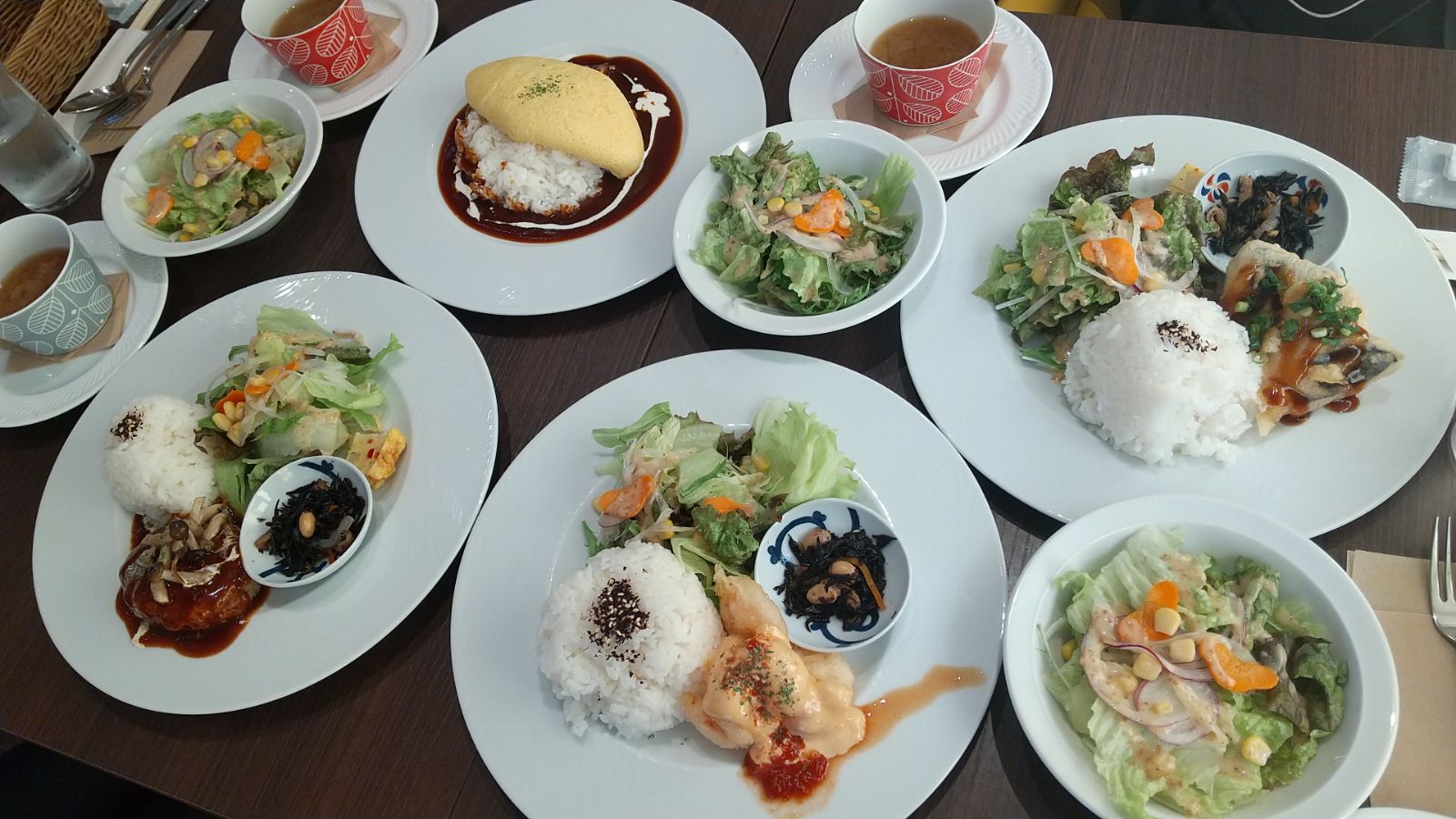 ハンバーグ、エビマヨ、サワラのフリット、オムライスにデザートもたくさんつけて大満足のランチでした。