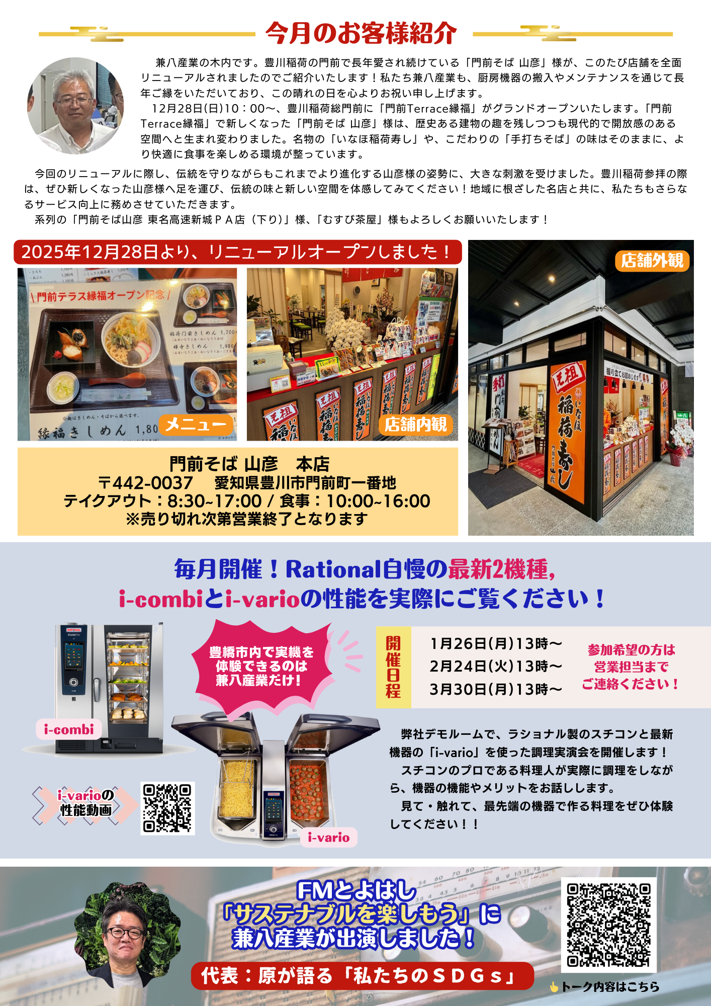 毎月お客様へお配りしております、兼八新聞を更新しました。
