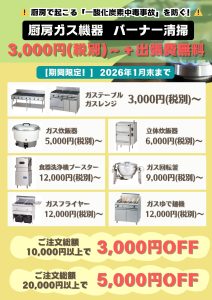 2026年1月末までの期間限定で「厨房ガス機器バーナー清掃」 を