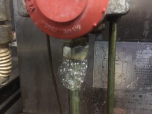 ガス配管の継ぎ目からガス漏れしていました。(ガス漏れしているとシャボン玉みたいに膨らみます)