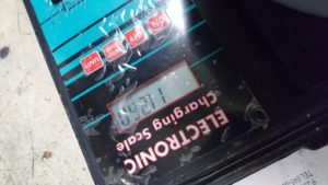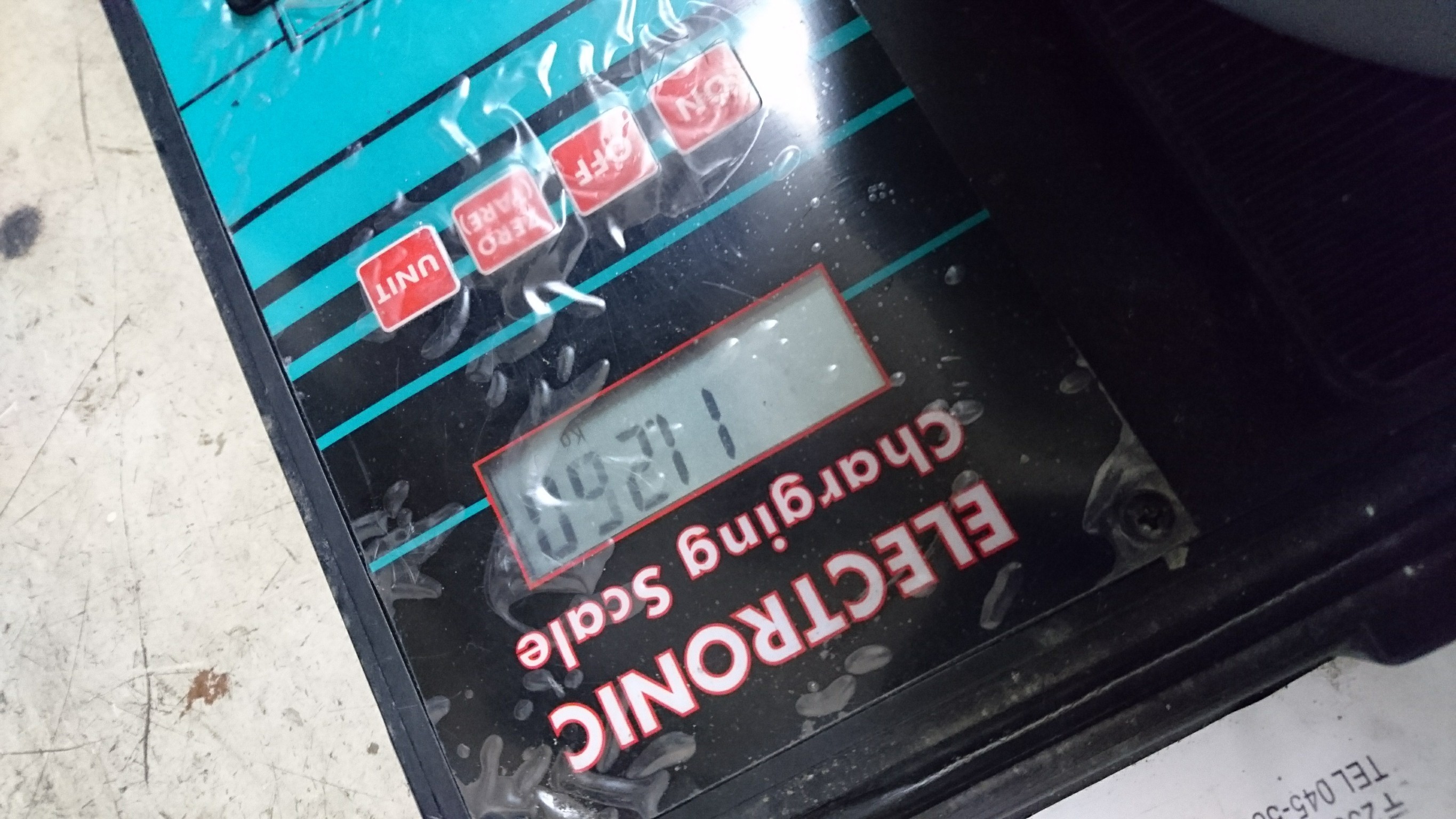 デジタルスケールに回収用ボンベを乗せ重さを記録し、ガスを回収します。