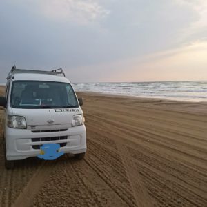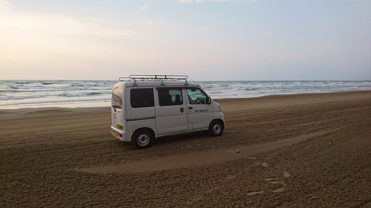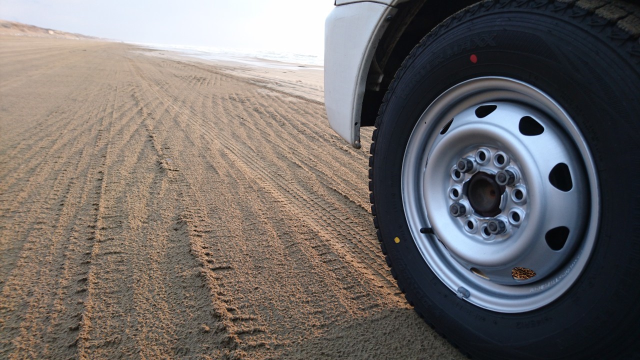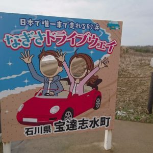 今日は、石川県の移動中におもしろいものを発見しました。千里浜なぎさドライブウェイというところで、日本で唯一車で走れる砂浜があり、多少時間があったので寄ってみました。