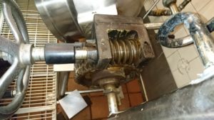 今回の修理は、給食などを作る現場によくある、回転釜に似た、ケトルの修理です。