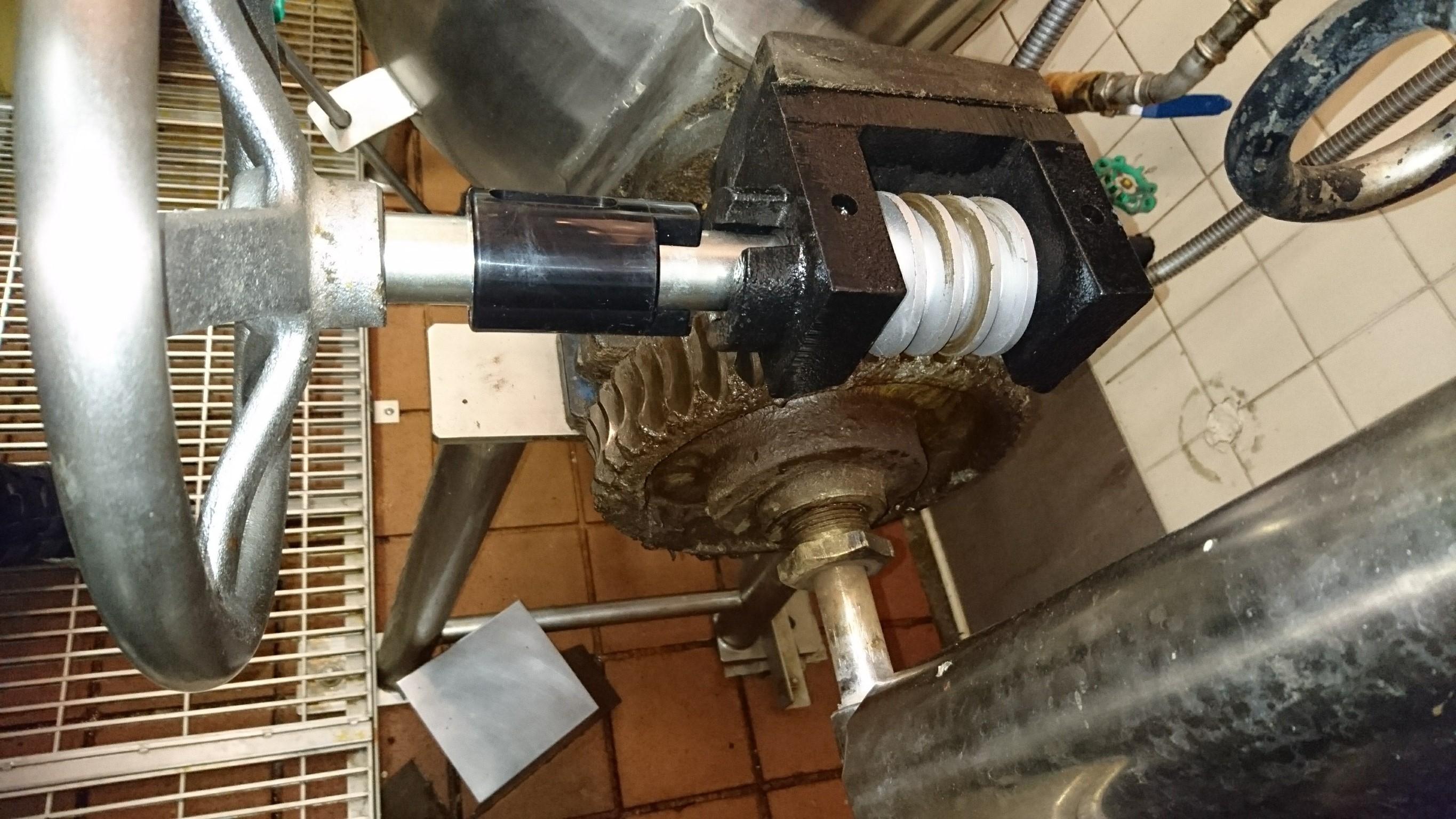 今回の修理は、給食などを作る現場によくある、回転釜に似た、ケトルの修理です。