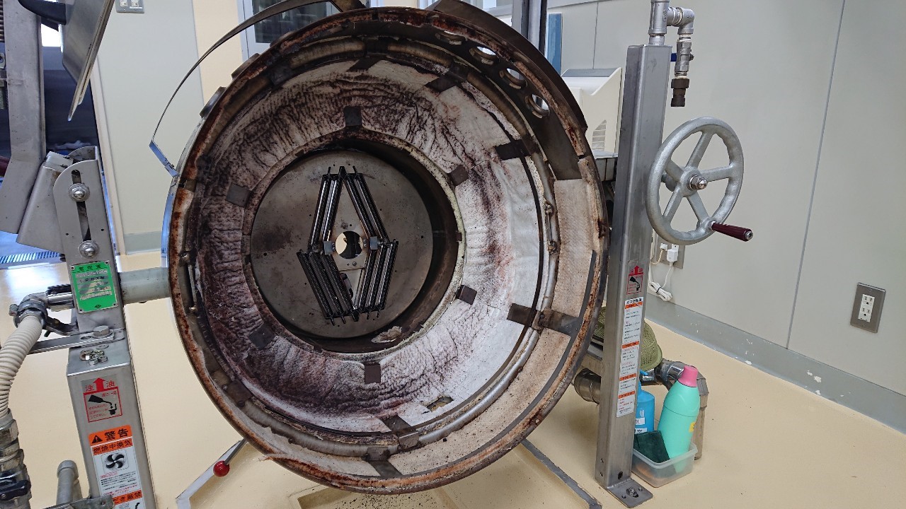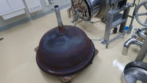 こんにちは、今回は、桐山工業製の回転釜の内釜交換です。