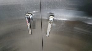今回の修理は食器消毒保管庫の扉が開かなくなったとのことで、行ってきました。