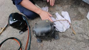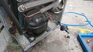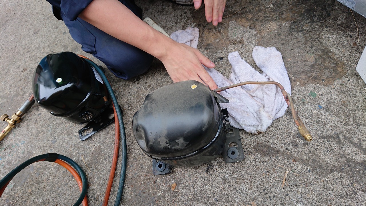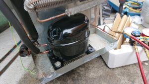 今回は、テーブル型冷蔵庫のコンプレッサー交換をしてきました。