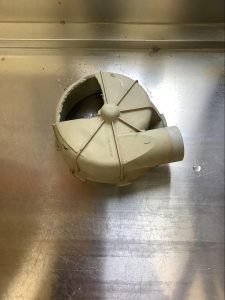 症状は機器を見てすぐに分かりました。洗浄機は洗浄ポンプで洗浄水を循環させて洗っていますが、循環させるためのポンプの吸い込み口(ケーシング)が破損し、洗浄水が洗浄ノズルから噴射されない状況でした。