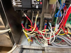 電装ボックスをあけてみるとリレーが3つ並んで入っており、一番左のリレーがガチャガチャと音を立てていました。