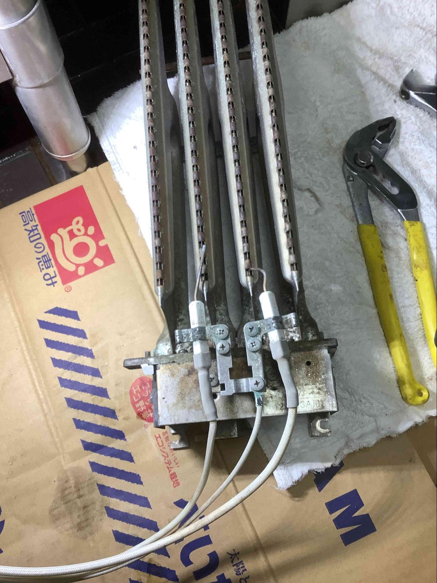 後日、部品を取り寄せて基板とスパークユニット(スパークプラグ・フレームロッド)を交換したところ、着火・点火動作ともに良好となり、無事に修理を完了いたしました。