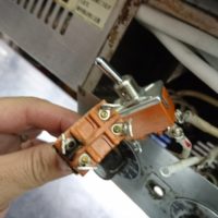 こんにちは、今回の修理は、吊ってあるウォーマーの修理です。 皿や料理を保温する機会です。 その熱源のヒートランプが1本点灯しないとのことで出動しました。 機器の動作を見て、スイッチが固く、怪しい感じでした。 ONにしても …